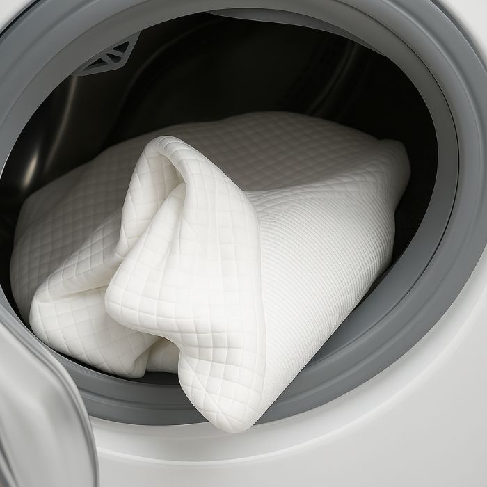 La almohada no debe lavarse en lavadora. Para limpiarla, basta con pasar un paño húmedo por la superficie y dejarla secar al aire.